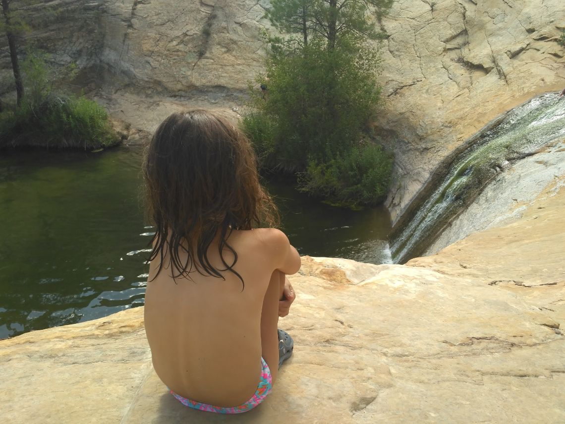 Por la tarde, baño en unas pozas en Upper Calf Creek Falls. El listón está tan alto y nos tienen tan mal acostumbrados, que nos han sabido a poco. En Utah hay un montón de mormones con ganas de hablar y compartir, y en estas pozas nos hemos juntado con una familia que ha flipado que nosotros que venimos de tan lejos, conozcamos un lugar que los propios "utahnianos" ni siquiera saben que existe. Google maps y la curiosidad tienen la culpa. A los/as que nos gusta hablar nos resulta frustrante no saber más inglés. Asignatura pendiente oh my friend.